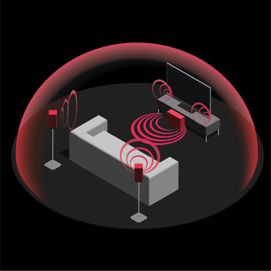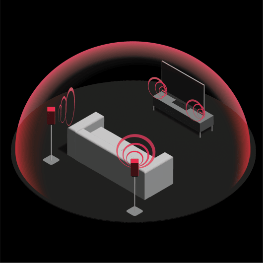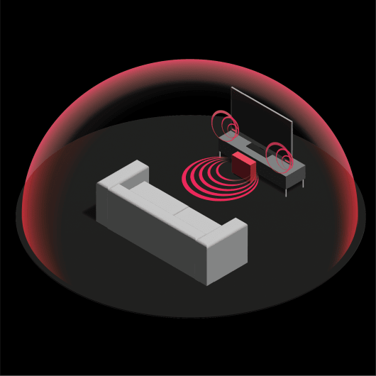 Für ein immersives, vollständiges Surround-Sound-Erlebnis, einschließlich Dolby Atmos®, arbeiten die AQUOS Wireless Surround Rear Surround Lautsprecher mit den Lautsprechern Ihres kompatiblen SHARP AWS Fernsehers zusammen, um ein 4.0-Kanal-System zu erstellen. Diese Einrichtung bietet eine präzise Platzierung von Audio-„Objekten“ im 3D-Raum um Sie herum.